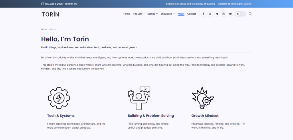 Explore tech, ideas, and the journey of building — welcome to Torin Digital Garden.
